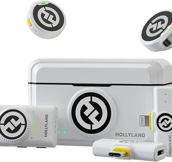Hollyland LARK M2 Wireless Microphone for iPhone, Android and Camera, 48KHz 24Bit Hi-Fi Audio, 1000ft LOS Range, Noise Cancellation, 40H Duration for Vlogging, White Version