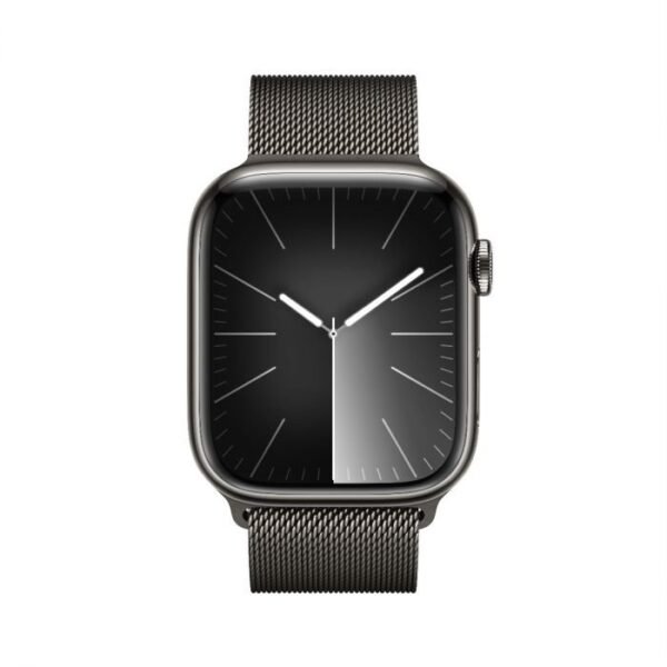 Apple Watch Series 9, 41mm, Black Stainless Steel Case, with Milanese Loop Band, Cellular Model.