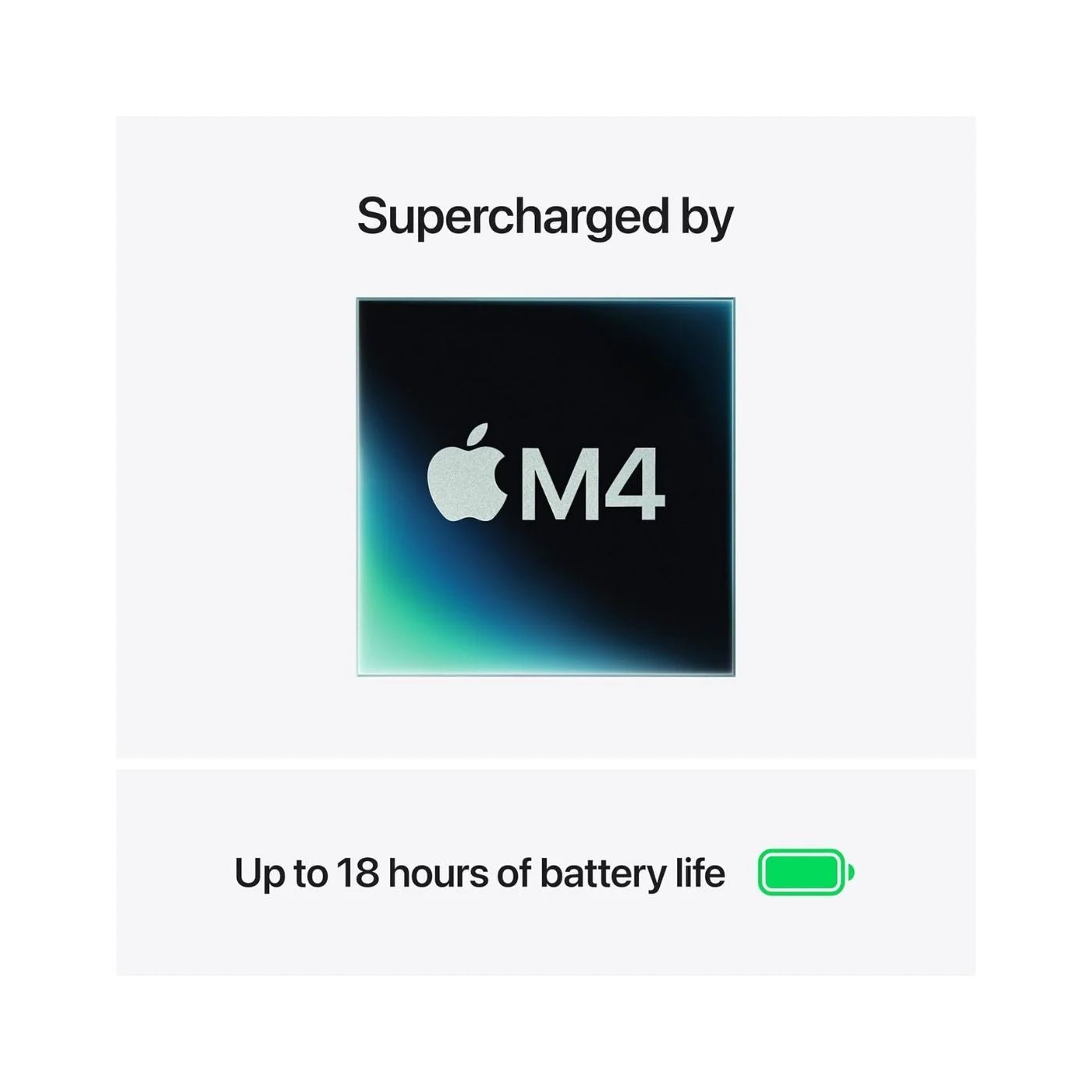Apple M4 Chip — 10-core CPU and 10-core GPU for ultra-fast performance across demanding apps and multitasking.