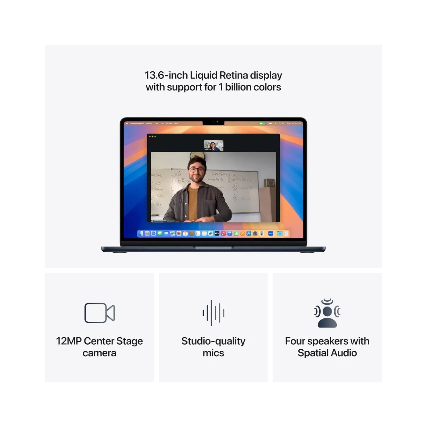 13-inch Retina Display — Brilliant colors, sharp text, and True Tone technology for an immersive viewing experience.