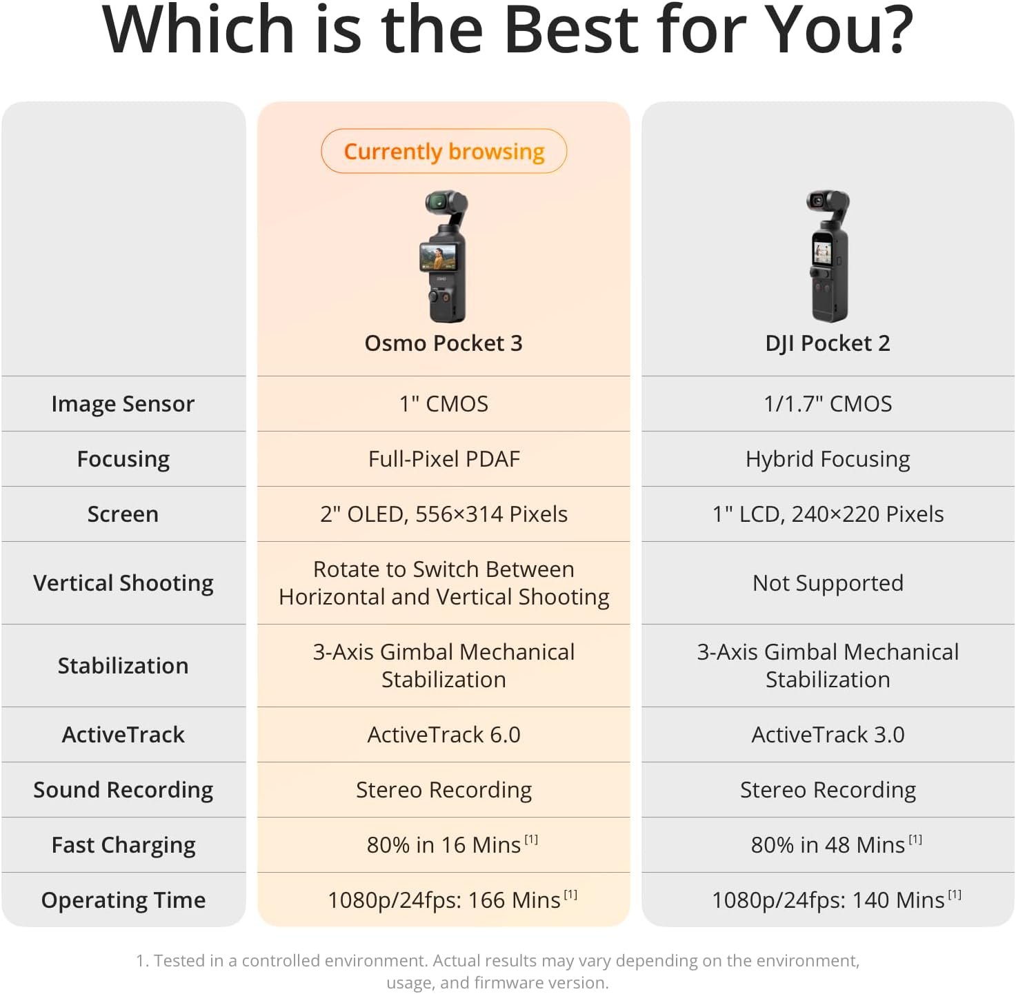DJI Osmo Pocket 3 – 4K/120fps Vlogging Camera | 1″ CMOS Sensor, 3-Axis Stabilization, Face/Object Tracking, Rotatable 2″ Touchscreen
