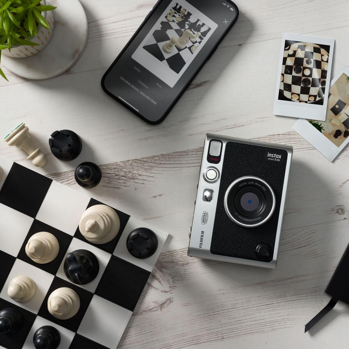 Fujifilm INSTAX Mini EVO Hybrid Instant Camera – Black, USB-C Charging, Digital Preview, Creative Lens & Film Effects, Built-In Selfie Mirror