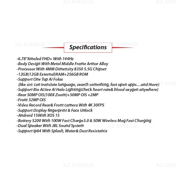 Capture every detail with the triple rear camera system (50MP + 50MP + 8MP) and enjoy stunning selfies with the high-resolution front camera. With 12GB RAM and 256GB storage, you’ll have plenty of space and power for all your apps, photos, and videos.