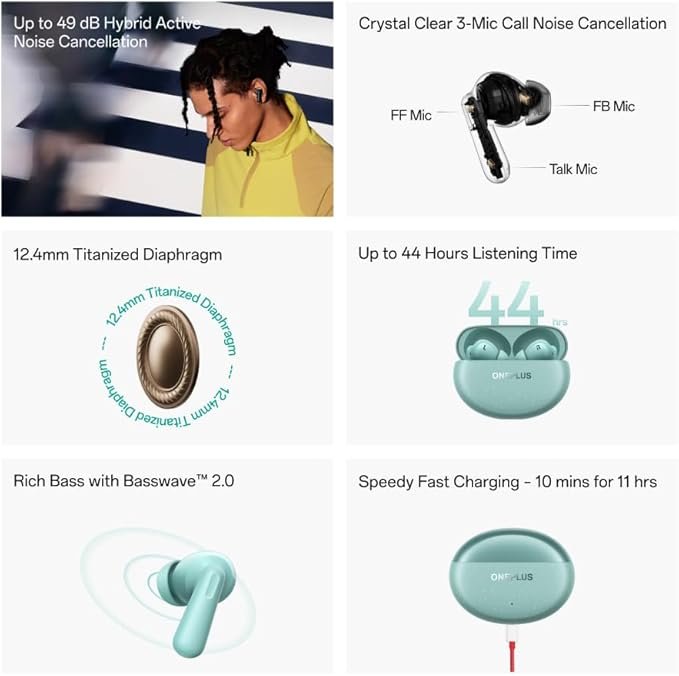 • Hybrid Active Noise Cancellation: Up to 49dB ANC for immersive sound.