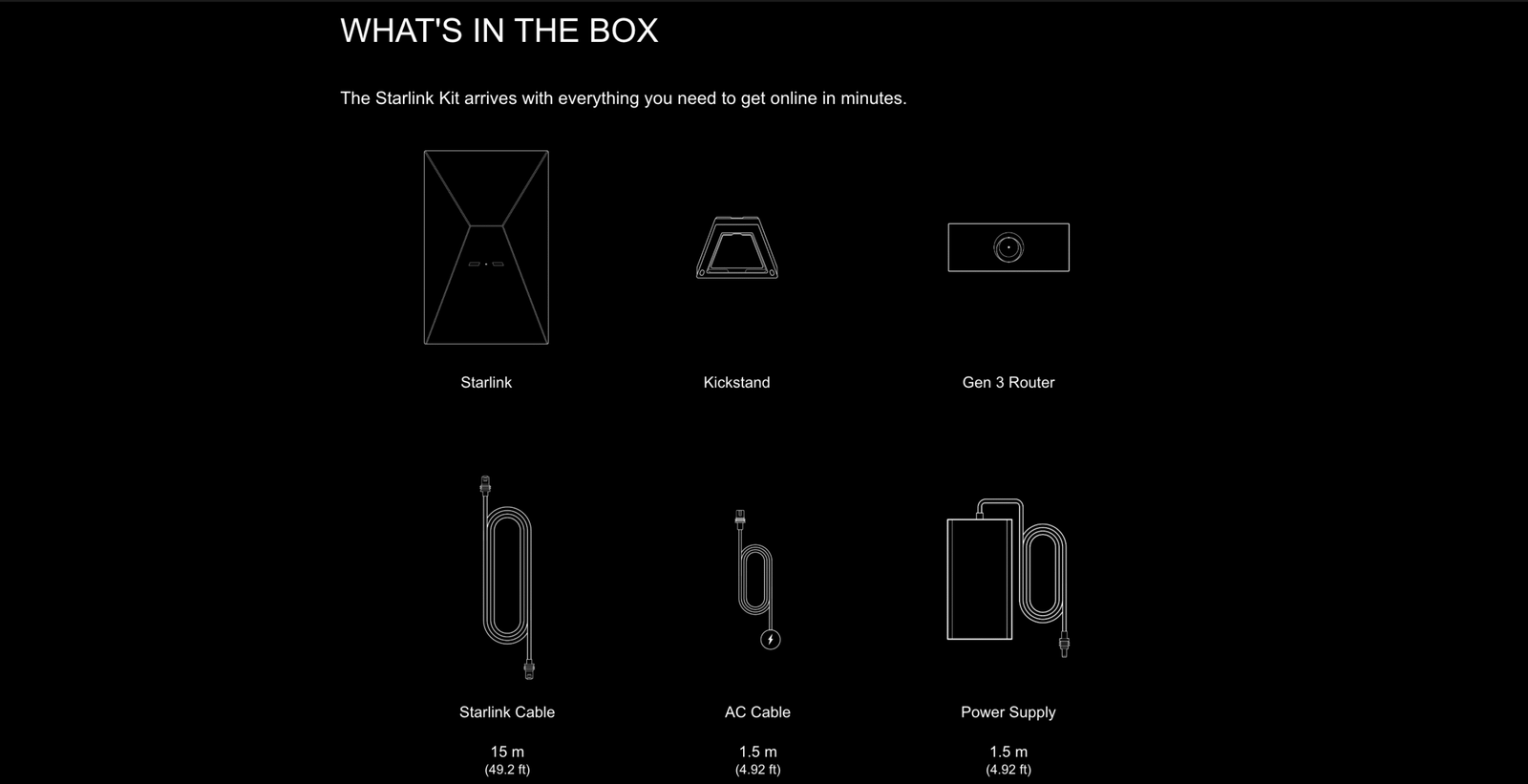 📦 Complete Kit – Includes Dish, Wi-Fi Router, Power Supply & Cables.